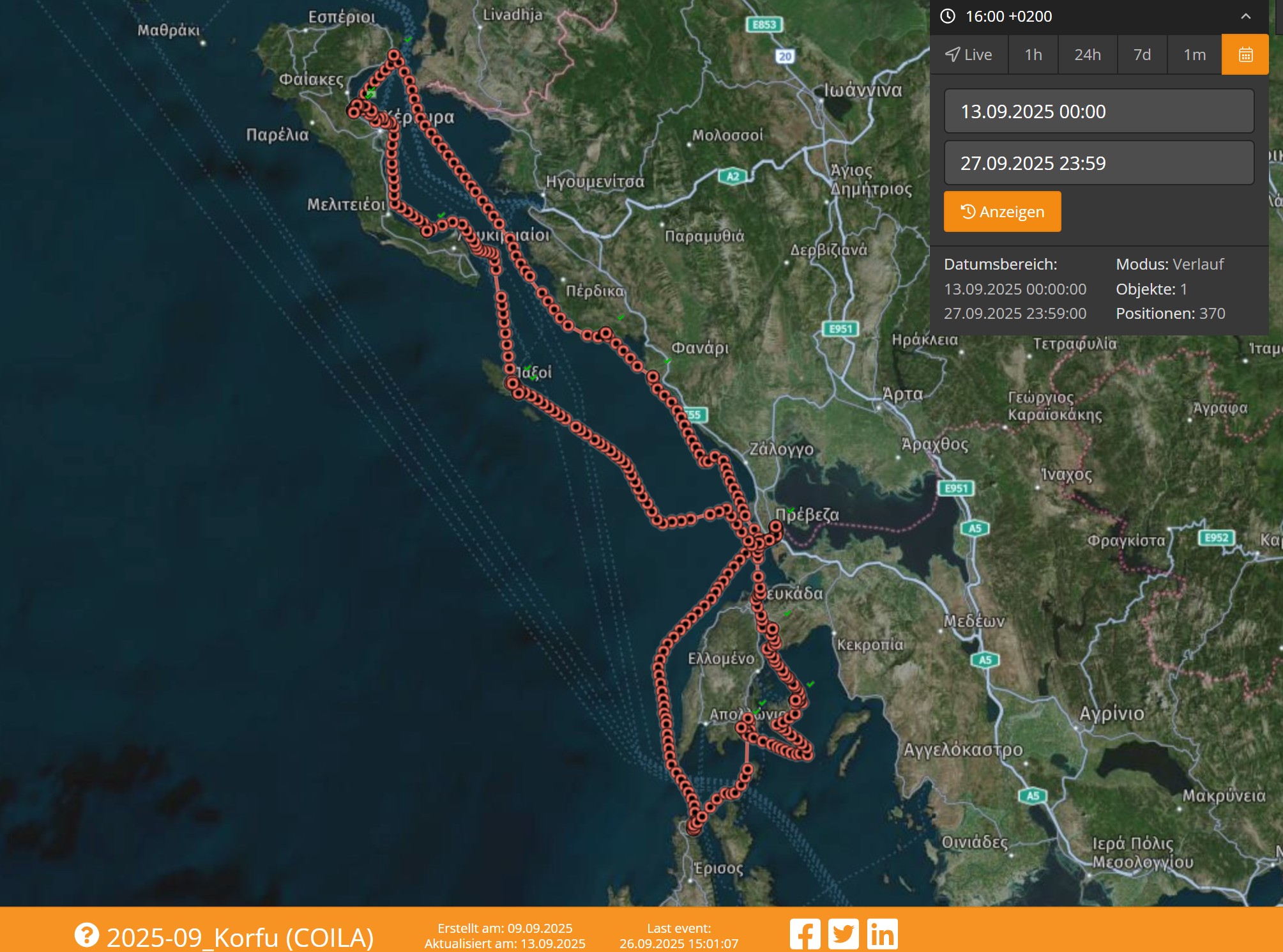 | SEEFAHRT | OFFHORE CRUISING 2025-09 | Korfu-Lefkas/Dufour 390 Grand Large 2024-09 | Sizilien/Äolische Inseln/Dufour 390 Grand Large 2024-06 | Korsika/Jeanneau Sun Odyssey 410 2023-09 | Mallorca/Sun Odyssey 410 ![]() 2023-06 | Bretagne/Dufour 430 ![]() 2023-02 | Kanarische Inseln/Sun Odyssey 419 2022-06 | Stockholms Schären/Hanse 388 ![]() 2021-09 | Sardinien/Bénéteau Oceanis 38.1 ![]() 2021-07 | Bretagne/Hanse 508 ![]() 2019-06 | Stockholm/Beneteau Oceanis 38 ![]() 2014-2019 | NORA-Sailing | Algarve-Madeira-Kanarische Inseln-Algarve
